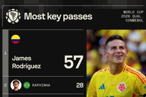 体育资讯9月11日讯 本届南美世预赛战罢,Sofascore统计了球员送出关键传球的次数,并列出榜单。