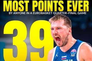 根据数据统计,东契奇此役39分,这是欧锦赛1/4决赛历史单个球员的得分纪录。