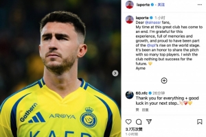 体育资讯9月12日讯 西班牙中卫拉波尔特即将回归毕尔巴鄂竞技,他在个人INS上发文,告别利雅得胜利,拉波尔特写道: