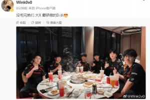 体育资讯9月13日讯 2025LPL第三赛段季后赛JDG 3-1战胜WBG,赛后辅助Wink分享队伍聚餐照并配文:"没毛兄弟们,大X,最骄傲的队长。"