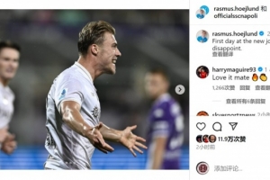 霍伊伦社媒晒出庆祝进球的照片,配文:“新工作的第一天没有让人失望。”