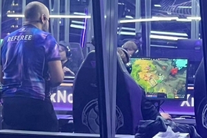 体育资讯9月14日讯 DOTA2 Ti14败者组XG对阵BB的第二局,据现场观众拍摄,Pure在暂停期间重启游戏,随后进入了斧王岛测试游戏人马拉车能不能断蝙蝠的拉!