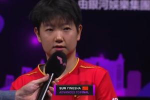 体育资讯09月14日讯 WTT冠军赛中国澳门站女单半决赛,孙颖莎4-1战胜蒯曼,顺利晋级决赛。赛后孙颖莎接受了采访。