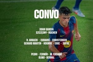 体育资讯9月14日讯 北京时间明天凌晨3点,巴萨将在西甲第4轮比赛中主场对阵瓦伦西亚。巴萨公布了此役的球员名单,亚马尔、加维、德容、巴尔德缺席。