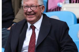 83岁的红魔传奇教头弗格森爵士来到伊蒂哈德球场,现场督战曼联。
