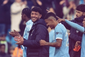 此役萨维尼奥为曼城替补出场,但他对自己在场上的表现似乎并不满意。