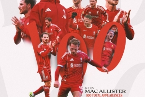 麦卡利斯特迎来利物浦生涯百场里程碑之战,此前99场比赛,阿根廷人打进14球并送出14次助攻。