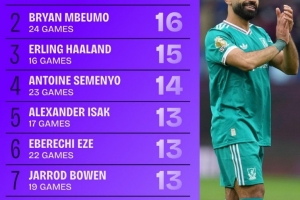 体育资讯9月19日讯 数据网站Squawka盘点了2025年英超参与进球榜(进球+助攻),萨拉赫居首,具体如下: