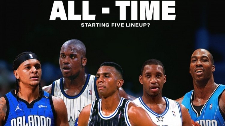 并抛砖引玉写到:“你心目中奥兰多魔术队的历史首发五人组是谁?”