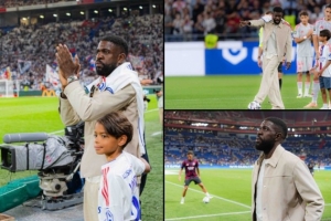 今天,里昂为乌姆蒂蒂举行了一场简短但感人的致敬仪式:俱乐部向他赠送了印有其名字的球衣,现场球迷则以热烈的掌声表达敬意。随后,乌姆蒂蒂在赛前进行了开球仪式。