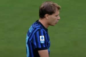 DAZN对那一刻的描述是:“比赛一开始,国米就控制了球权,巴雷拉获得了第一个机会,他打得非常好,但差了几厘米。23号愤怒了一下,然后抬头看向天空抱怨说:‘我真是倒霉透顶了。’”