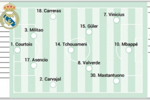 阿隆索最初计划仅调整锋线,维尼修斯将重回首发。同时将迎来贝林厄姆和卡马文加两大备受期待的变数。虽然两人都已进入对阵马赛的大名单,但教练认为当时并非合适的登场时机,而本场计划在下半场逐步让他们替补登场。