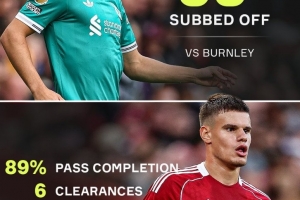 利物浦新援科尔克兹在上一轮英超对阵伯恩利的比赛中第38分钟就被提前换下,对阵马竞也只在最后时刻替补登场,不过本场比赛他可谓证明了自己的实力,贡献6次解围、6次成功对抗,传球成功率高达89%。
