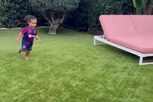 体育资讯9月21日讯 据西班牙媒体《世界体育报》报道,巴萨吉祥物来到拉菲尼亚家中,与拉菲尼亚的儿子互动。