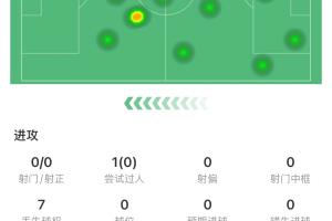 体育资讯09月22日讯 英超第5轮,曼城半场1-0领先阿森纳。B席半场吃到一张黄牌,7次丢失球权仅获6.5分。