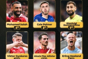 体育资讯9月23日讯 2025年金球奖排名已经确定,前30中共9名目前在英超效力的球员,英超官方晒出这些球员以及具体排名,萨拉赫第4为英超球员最高。