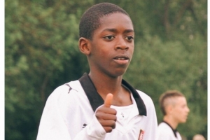 雷恩社媒晒出登贝莱儿时在俱乐部的照片,配文:“相信自己的梦想。”