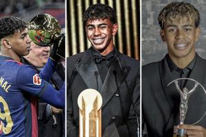个人荣誉:2025年金球奖第二、1次金童奖、2次科帕奖、2025劳伦斯年度最佳突破奖、2024欧洲杯最佳年轻球员