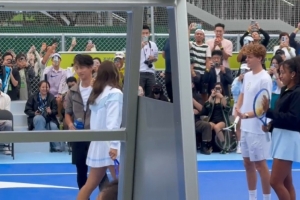 2025年中网在北京展开,本站赛事迎来复出的郑钦文赛前出席活动,他与艺人吴尊击掌致意。今年法网女单第1轮,吴尊现场观看了郑钦文的比赛。