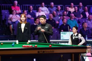 在张安达与白雨露带来的"中国德比"中,白雨露单杆74分拿下首局,随后张安达接连轰出101、130、125分三杆破百拿到赛点,白雨露不甘示弱,连扳两局来到决胜局。