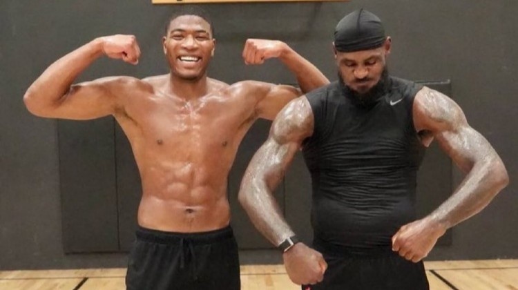 照片中,詹姆斯与八村塁大秀肌肉,湖媒Lakers Daily转发并配文:积极备战新赛季!