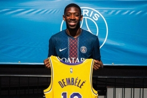 湖人官方晒照送上祝贺:“祝贺奥斯曼-登贝莱荣获2025年金球奖👏!”