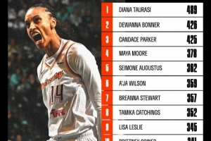 水星球员德万娜-邦纳在比赛第四节快攻上篮得手,至此,她超越坎迪斯-帕克,排名WNBA历史季后赛命中数第二。榜单前三如下: