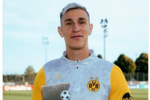 体育资讯9月24日讯 多特官方更新社媒动态,晒出队内中卫施洛特贝克与上赛季最佳阵容奖杯的合照。