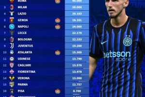 体育资讯9月24日讯 德转盘点了意甲球队的季票销售情况,国米和罗马均卖出4万张季票,并列第一。