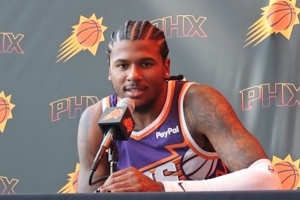 体育资讯9月25日讯 今天,太阳球星杰伦-格林参加了新闻发布会。