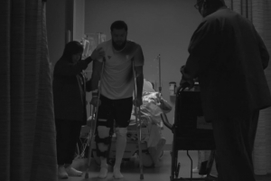 视频中记录了范弗里特受伤后被推进手术室,已经躺在病床上的一些镜头。