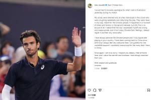 体育资讯09月27日讯 意大利选手穆塞蒂在INS发文,为昨日中网比赛骂场边咳嗽球迷的无理行为致歉。