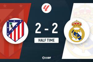 上半场补时7分钟,马竞2-2皇马。