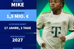 德转也公布了麦克初始身价,为150万欧,他与拜仁目前的合同将到2027年到期。