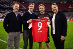 曼宁造访拜仁俱乐部,与凯恩见面,他获赠凯恩的9号签名球衣,拜仁官方社媒晒出照片和视频。