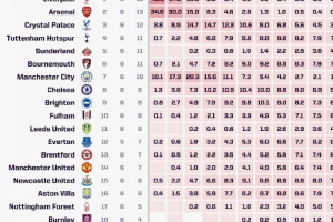 体育资讯9月29日讯 Opta更新了超级计算机预测的英超各队夺冠概率,利物浦46.5%仍居首位,阿森纳逆转纽卡之后升至34.6%,排名次席。