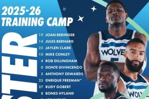 体育资讯9月29日讯 森林狼官方公布了新赛季训练营的大名单,一共21名球员,具体如下: