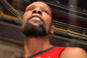 杜兰特身穿火箭球衣参加媒体日活动:火箭球迷们,我来啦。能够成为一名火箭成员太棒了。让我们开启一个杰出的赛季吧,伙计。让我们冲,我已经等不及看到你们来到丰田中心了。爱你们。”