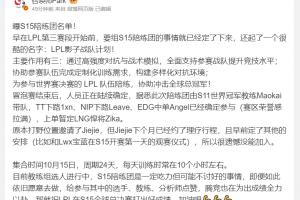 体育资讯9月30日讯 今日微博著名博主“召唤师Park ”更博透露目前关于S15陪练团的部分人选名单。
