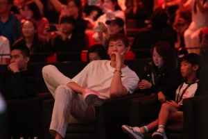 VIP!今天WTT中国大满贯继续在北京首钢园进行,北京男篮球员周琦与陈盈骏来到现场观看王楚钦林诗栋对阵瑞典组合的男双比赛!