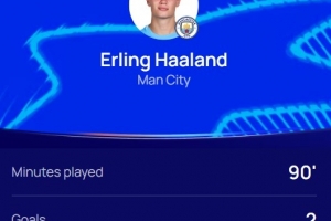 体育资讯10月2日讯 在曼城客场2-2战平摩纳哥后,梅开二度的哈兰德当选全场最佳。
