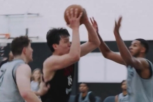 开拓者官方配文写到:“太硬了,新秀!杨瀚森在开拓者训练营第2天完成了一个转身动作并强硬打进!”