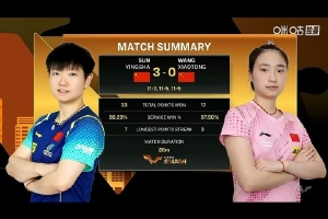 三局比分:11-7,11-5,11-5。