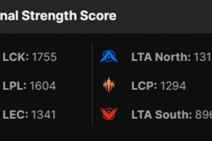 LCK和LPL保持不变,LEC高于LTA North,LCP紧随其后,LTA South保持不变