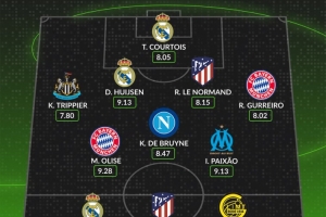 WhoScored欧冠第二轮最佳阵容
