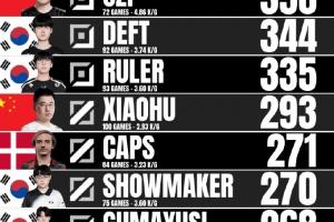 7.Showmaker:75场/270总击杀 场均3.60击杀