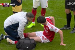 体育资讯10月04日讯 英超第7轮,阿森纳vs西汉姆联。比赛第78分钟,赖斯疑似背部受伤无法坚持,被梅里诺换下。马丁内利也登场换下埃泽。