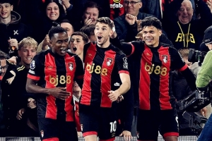 在英超第7轮率先开打的一场比赛中,伯恩茅斯凭借塞梅尼奥的梅开二度以及小克鲁伊维特的进球,主场逆转富勒姆。首轮输给利物浦时,伯恩茅斯曾被很多媒体预测为本赛季的降级大热门,但伊劳拉和弟子们很快以6轮不败(4胜2平)的表现粉碎了舆论的质疑。击败富勒姆之后,伯恩茅斯一度占据英超积分榜第二位(目前排名第4),创造了队史顶级联赛最佳开局。
