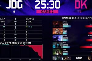两场比赛,第一场JDG前期优势但是被翻盘,次局DK更是全程碾压拿下比赛胜利。
