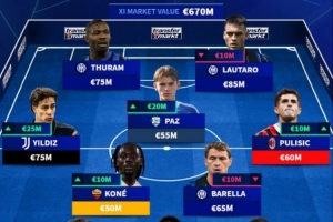 体育资讯10月8日讯 德转更新了球员身价排名,意甲最贵首发11人也随之出炉,国米的劳塔罗和图拉姆领衔锋线,AC米兰球员普利西奇入选。